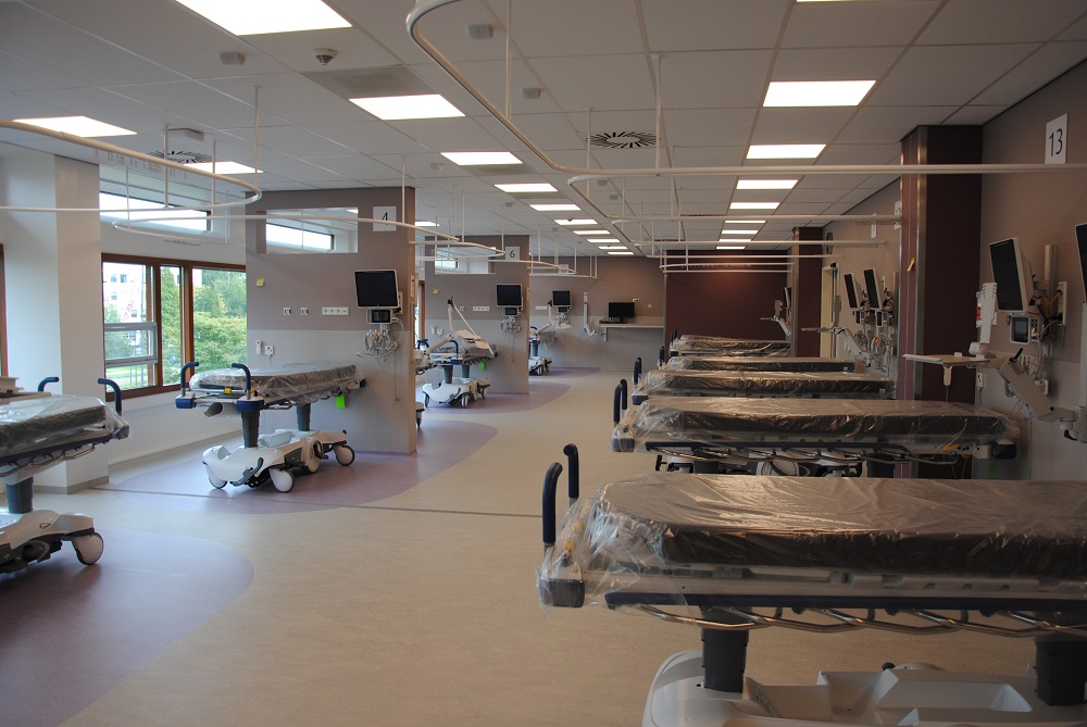 SCHIEDAM - De pers kreeg vanmiddag een preview in het nieuwe Scopiecentrum in Franciscus Vlietland. Het Scopiecentrum zal vanaf midden november dit jaar in gebruik genomen worden voor de behandeling van patiënten. Op de foto zie je de zaal met veertien bedden voor de dagbehandeling van patiënten. Jan Willem de Boer sprak met Maag- Darm- en Leverarts Ivonne Leeuwenburgh. Zij legt onder meer uit welke behandelingen plaats gaan vinden in het Scopiecentrum.