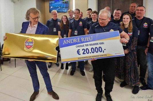 Dat bleek nog lang niet alles te zijn. André wilde het team graag na zijn concert ontmoeten. ‘’Hij kwam met een enorme cheque onder zijn armen aanwandelen. Toen deze uit de envelop geschoven werd en er in koeienletters 20.000 euro op te lezen viel, gingen we door het dak’’, aldus het Rotterdamse teamlid.