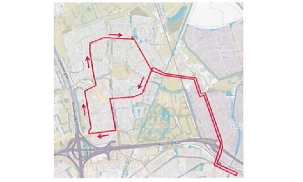 Vanaf 9 januari 2020 zal de ringbus door Schiedam Noord in één richting rijden, komend vanaf het Station Schiedam Centrum aan het eind van de 's-Gravelandseweg bij de rotonde links af de Zwaluwlaan op. Vervolgens wordt Groenoord aangedaan, waarbij onder meer de Laan van Bol'es en Van Beethovenlaan worden gevolgd. Op een gegeven moment wordt de rondweg weer opgepakt en wordt uiteindelijk na de Slimme Watering bij de rotonde links afgeslagen de 's-Gravelandseweg op.