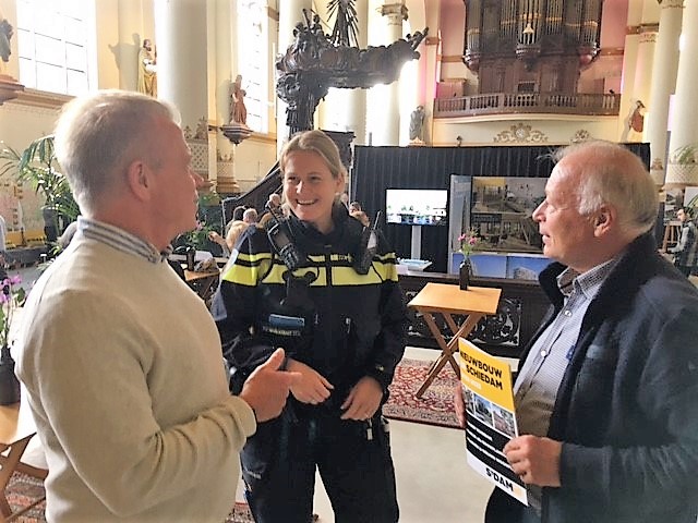 Sanne Reijnhout maakte er dankbaar gebruik van dat er vandaag allerlei activiteiten in het centrum waren om meteen goed kennis te maken met activiteiten, organisaties en inwoners. Zo had zij een bezoek gebracht aan de open dag van Soos Blauwhuis. Zoals je op de foto kunt zien, bracht zij ook een bezoek aan de Nieuwbouwdag Schiedam 2022 die vandaag in de Havenkerk plaatsvond.