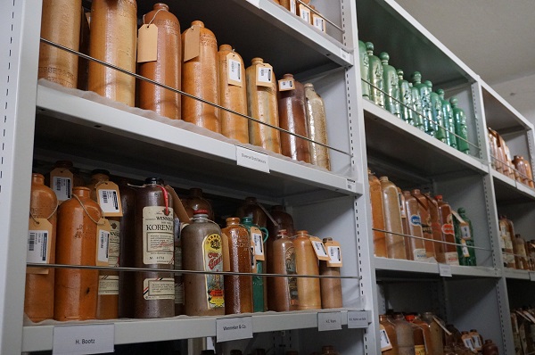 Vorige week donderdag en morgen, donderdag 23 februari, worden rondleidingen verzorgd in het depot. Wim Lagendijk, vrijwilliger van het museum, houdt op de begane grond van het depot eerst een inleiding over hoe men in het depot te werk gaat. Bijvoorbeeld over hoe de registratie van nieuwe artikelen gaat en hoe en onder welke voorwaarden je jenevergerelateerde objecten van historische waarde kunt schenken aan het museum.