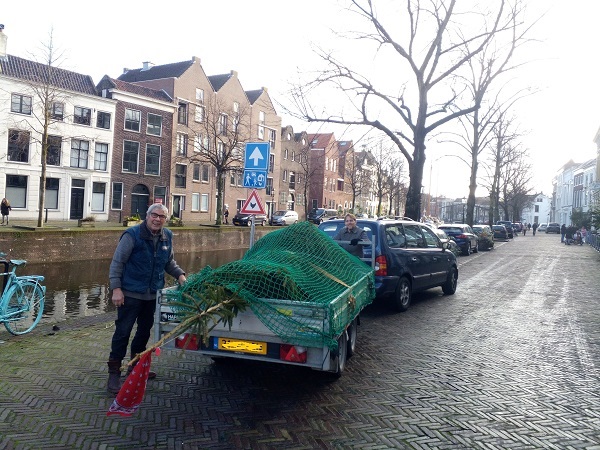 Foto onder: Wim Caris levert de boom af in Schiedam (foto door Corine Robers)