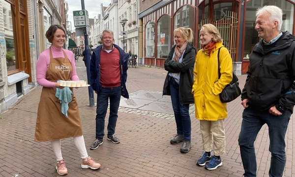 Deelnemers worden op een bijzondere plek in het centrum ontvangen met een kopje koffie. Het programma begint om 10.30 uur. Na een onderlinge kennismaking volgt een presentatie en is er gelegenheid tot het stellen van vragen. Daarna volgt een korte wandeling door het historisch hart van Schiedam. Ook tijdens de wandeling is er volop gelegenheid om vragen te stellen. Het programma duurt tot ongeveer 12.00 uur.