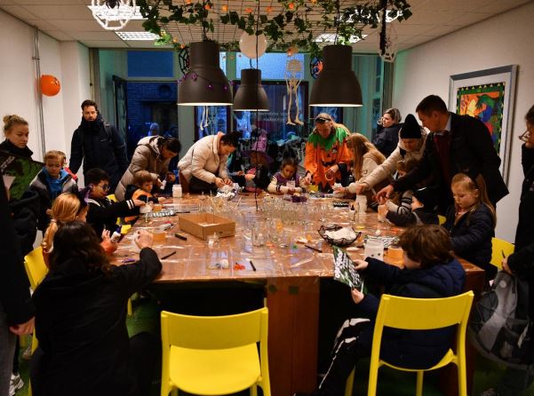 Bij de heksjes Bep en Tilly stonden al voor 16.00 uur gezinnen in de rij voor hun bus op het Koemarktpleintje. Bep en Tilly, met hun groenten/kruiden tuintjes als toeleveranciers van heksen, vertelden het verhaal en daarna gingen de kinderen, met de ouders erachteraan, op pad naar opdrachtjes kakkerlakpoepen en spinnetje prik bij de eerste ondernemers op de Hoogstraat. Even Winkelcentrum Passage Schiedam binnen voor de photobooth. Super leuk! Op de Hoogstraat meedoen met geheimschrift, XL Skelet puzzel, oogbal parcours, bibberspiraal, muizen zoeken, grabbelen, voelen, kruiden en specerijen herkennen, achter de freaky foto wand, onder de fluisterhoed, door de griezelsteeg via het supergrote spinnenweb, bij de muziekwinkel dansen op spannende griezeldansmuziek, daarna leren bezemvliegen, een mummielampje maken, een spinnetje op je wang schminken, heksenhoed werpen, ruiken, richting de toverdrank met snoepje bij de finish. Wat een tocht! En dan was het nog niet klaar! Nico Sterrenberg bood alle kids met een volle stempelkaart ook nog een oliebolletje aan! "Tot volgend jaar!” werd er geroepen door ouders.