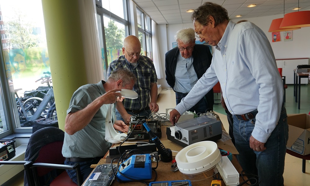 Hoe lang ga je nog verder met het Repair Café? “Zo lang als het kan. Voorlopig gaat het goed. De vrijwilligers zijn rond de zestig jaar, maar met uitschieters boven de tachtig jaar. Dus ik ben nog lang de oudste niet”, zegt Bostelaar met een grijns op het gezicht. “Uiteraard zijn jongere vrijwilligers ook altijd welkom, zodat we in lengte van dagen door kunnen gaan. Duurzaamheid is nou eenmaal niet een tijdelijk iets. Ook broeden we op ideeën voor uitbreiding van onze dienstverlening. Denk bijvoorbeeld aan een Repair Café on Tour. In samenwerking met Seniorenwelzijn zijn we aan het bekijken of we bij mensen thuis langs kunnen gaan. Wordt vervolgd.”