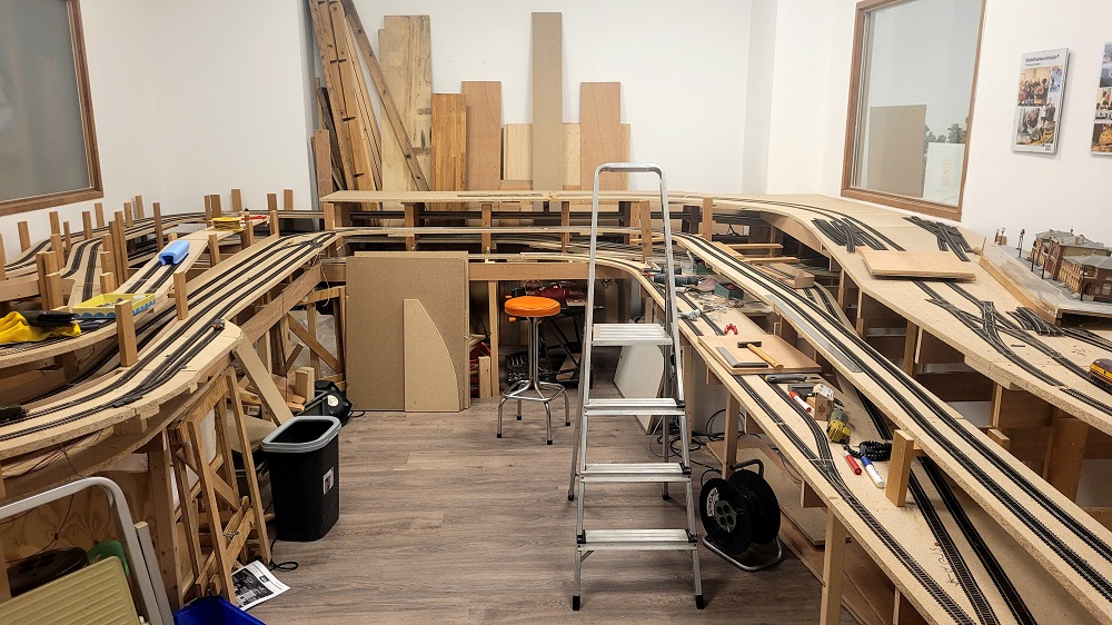 Op de foto boven het artikel zie je de grote H0-baan in aanbouw. Tijdens het weekend geven de leden uitleg hoe zij zo'n baan opbouwen en wat er nog meer wordt gedaan in de club.
