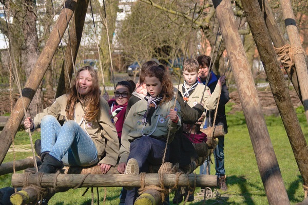 SCHIEDAM – In het afgelopen weekeinde begon de astronomische lente. Om dit te vieren bouwden de scouts van de Scouting Tono-groep zelf een familieschommel.