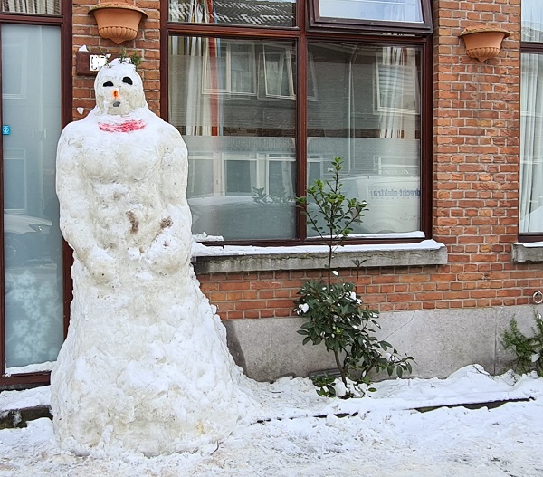 Hierboven zie je de foto's van Nicolette Schiks. Hieronder zie je enkele sneeuwpoppen die de redactie ten zuiden van de A20 in Schiedam vereeuwigde.