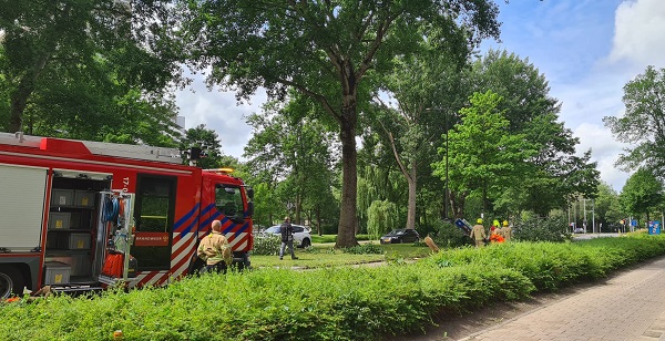 SCHIEDAM - Brandweer en politie zijn vanmiddag uitgerukt vanwege een van een boom op de Mozartlaan in Schiedam Groenoord afgeknapte tak.