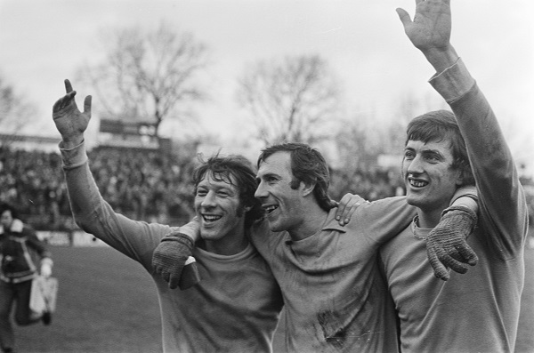 Foto: Simon van Vliet (rechts) viert feest met zijn ploeggenoten Mansveld (links) en Thie (midden), foto door Peters, Hans / Anefo - GaHetNa (Nationaal Archief NL) 928-3789, CC0, https://commons.wikimedia.org/w/index.php?curid=38970818
