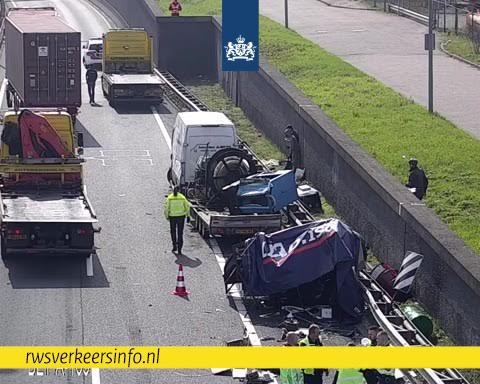 SCHIEDAM - Een ongeval tussen een vrachtwagen en een bestelbusje op de A4 net vóór de Beneluxtunnel richting Rotterdam-Zuid is beperkt gebleven tot materiële schade en oponthoud voor het verkeer.