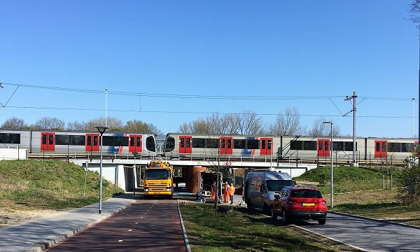 SCHIEDAM - Op de Parkweg bij de tunneltjes bij het park moet het verkeer op de weg en op het fietspad vandaag en volgende week rekening houden met werkzaamheden aan het riool.