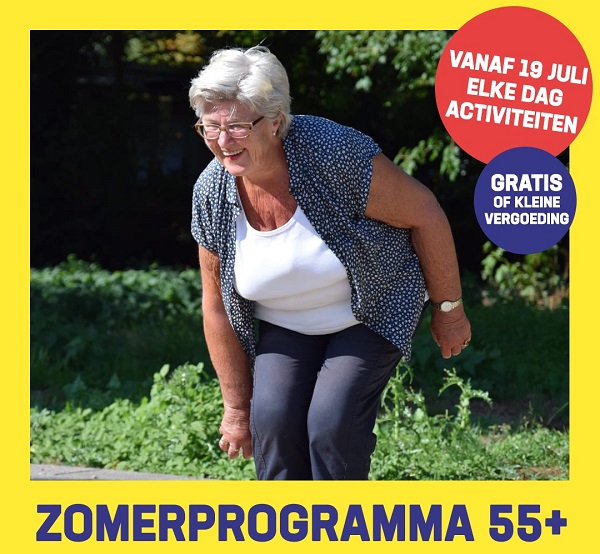 Op 19 juli start het programma voor 55+. Van 10.00-11.30 uur zijn deelnemers van harte welkom op de Maasboulevard bij DobbelFit. Hier ontvangen deelnemers meer informatie over het zomerprogramma en is er tijd voor gezelligheid en een bakje koffie. Deze zomer is er dagelijks wel iets te doen voor 55+. Voor het programma, zie www.lekkerbezigschiedam.nl of via e-mail corné@lekkerbezigschiedam.nl