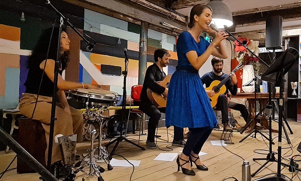 Foto boven: tijdens het eerste concert Eso Es!, v.l.n.r. Lauriane Ghils, Alvaro Rovira Ruiz, Mirre Valkenburg en Miguelángel Clerc (zie hier een muziekfragment uit Eso Es! )