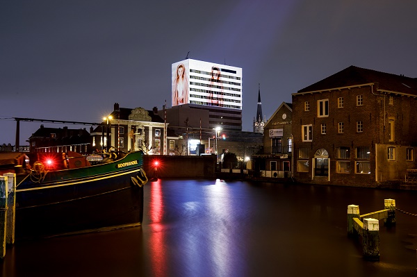 ‘Drie avonden lang nemen zij de projector over’, zegt Catrien Schreuder, Hoofd Tentoonstellingen en Collecties van het museum. De projector op Molen De Kameel staat elke avond tussen 17.00 - 21.00 uur aan. Je kunt het van verre zien als je een blokje om gaan. Sommige Schiedammers zitten op de eerste rang en hebben er vanuit hun woonkamer zicht op.