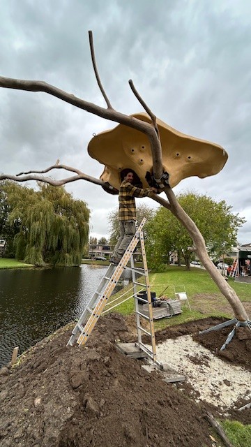 SCHIEDAM - Op zaterdag 18 oktober aanstaande om 11.00 uur wordt dit in aanbouw zijnde kunstwerk op de hoek van de Vinkenlaan en de Leeuweriksingel in de Vogelbuurt in Kethel officieel geopend. De titel van het kunstwerk is 'Buurtnest'.