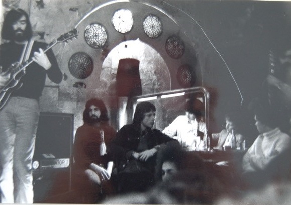 Foto boven: de band Alveo treedt op in de Quibus (foto door Karin de Ruiter, uit het privé-album van Paul Schaeffer, zanger/gitarist, geheel links op de foto)