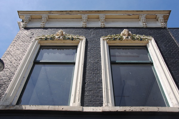 Foto's hieronder: het voormalige pand van Tange aan Schie 50. Op de eerste verdieping van het pand zie je historische ornamenten. In het verre verleden was er in dit pand een bordeel gevestigd