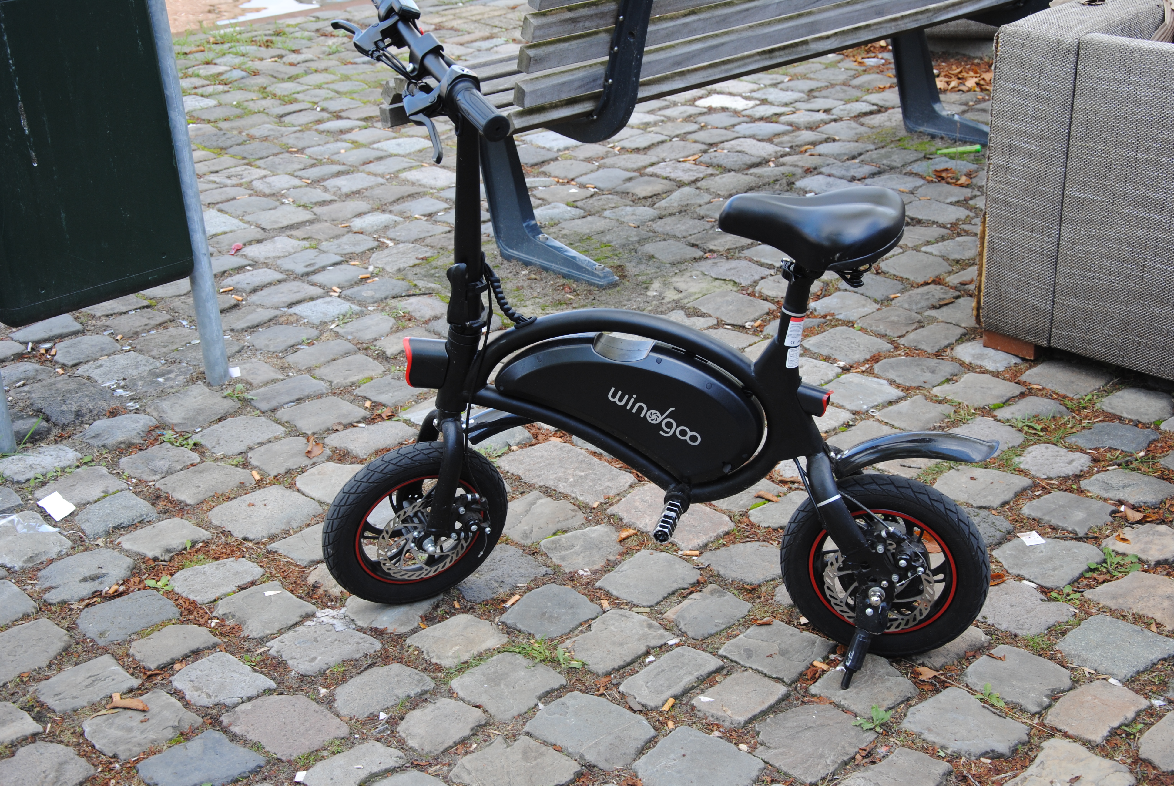 Foto: een niet toegestaan elektrisch stepje geparkeerd op de Noordvest in Schiedam, foto (c) De Schiedammer Online