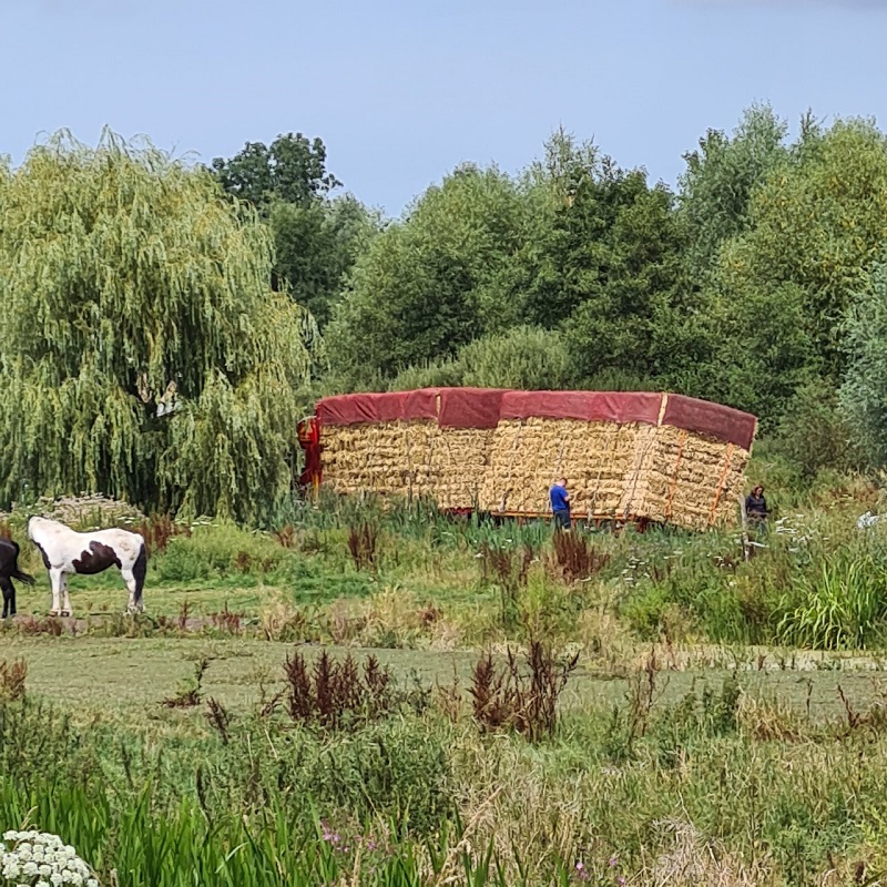 SCHIEDAM - Vanmiddag rond een uur of twee is er aan de Groeneweg in Schiedam een vrachtwagen met strobalen half van de weg geraakt.